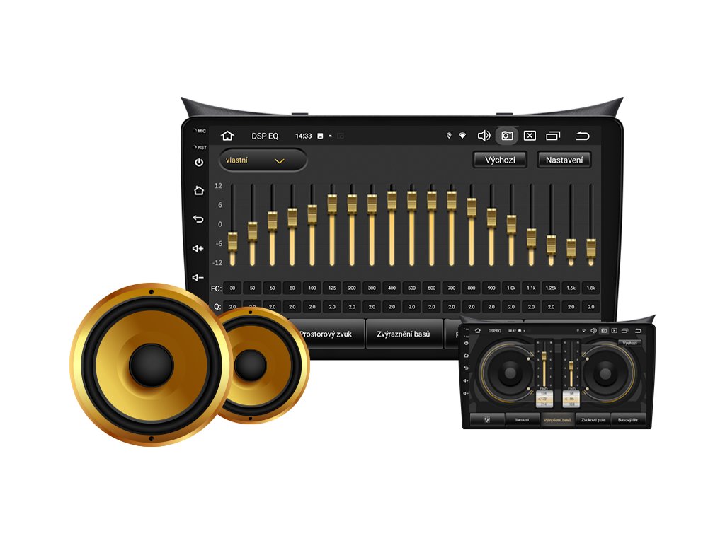✔️ Intuitivně použitelné nastavení zvuku: vyvážení (levý kanál, pravý kanál) a fader (přední a zadní).