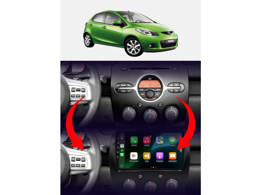 Rádio určené a plně přizpůsobené pro provoz ve vozidle Mazda 2 2007-2014