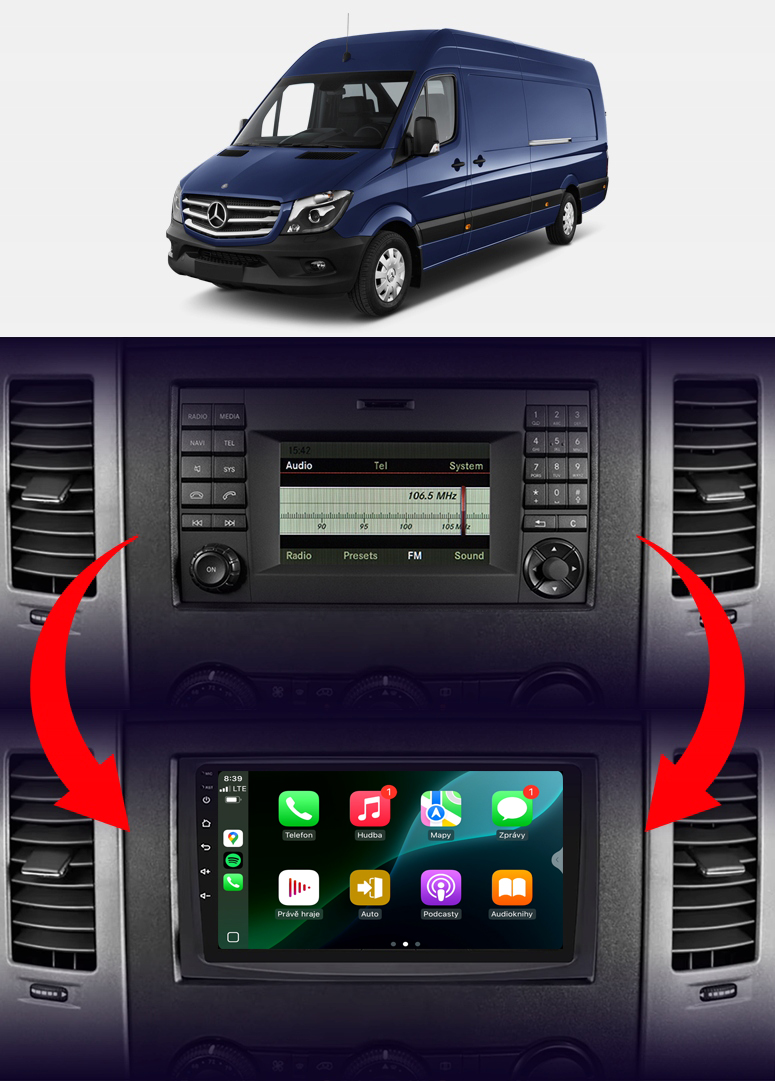 Rádio určené a plně přizpůsobené pro provoz ve vozidle MERCEDES SPRINTER W906 2006-2019