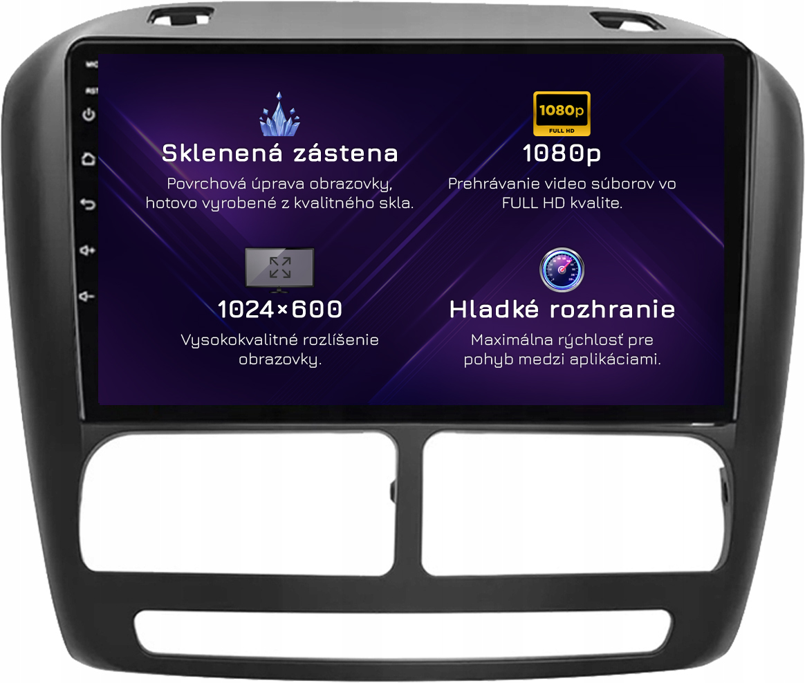 ⚠️ Rozlišení: 1024px x 600px = širokoúhlý Super VGA. Nejběžnější zobrazovací standard pro špičková rádia. Filmy se přehrávají v HD kvalitě.