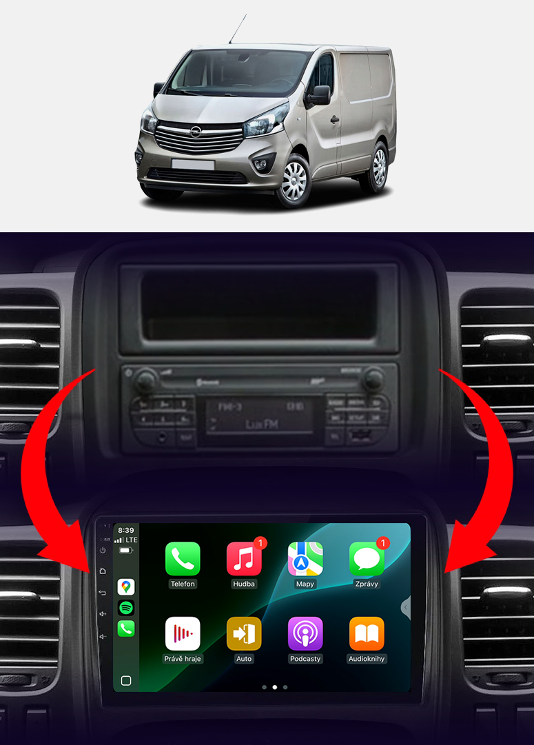 Rádio určené a plně přizpůsobené pro provoz ve vozidle OPEL VIVARO B 2014-2019