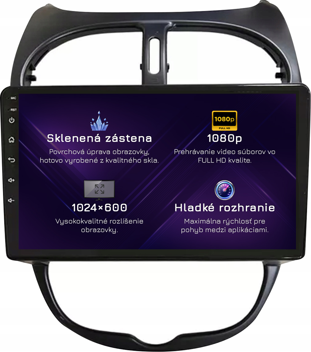 ⚠️ Rozlišení: 1024px x 600px = širokoúhlý Super VGA. Nejběžnější zobrazovací standard pro špičková rádia. Filmy se přehrávají v HD kvalitě.