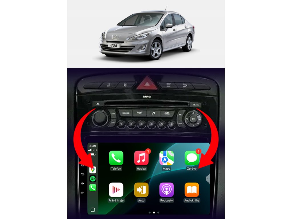 Rádio určené a plně přizpůsobené pro provoz ve vozidle Peugeot 408 2010-2014