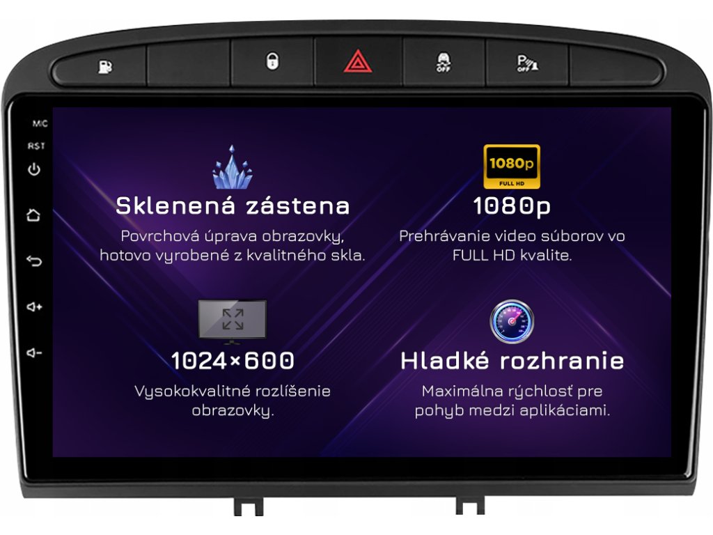 ⚠️ Rozlišení: 1024px x 600px = širokoúhlý Super VGA. Nejběžnější zobrazovací standard pro špičková rádia. Filmy se přehrávají v HD kvalitě.