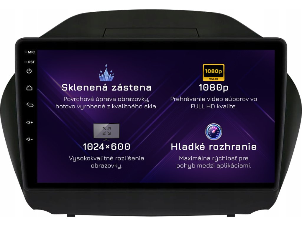 ⚠️ Rozlišení: 1024px x 600px = širokoúhlý Super VGA. Nejběžnější zobrazovací standard pro špičková rádia. Filmy se přehrávají v HD kvalitě.