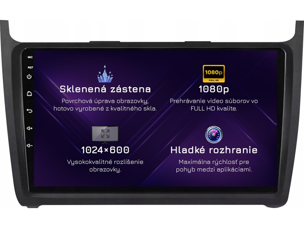 ⚠️ Rozlišení: 1024px x 600px = širokoúhlý Super VGA. Nejběžnější zobrazovací standard pro špičková rádia. Filmy se přehrávají v HD kvalitě.