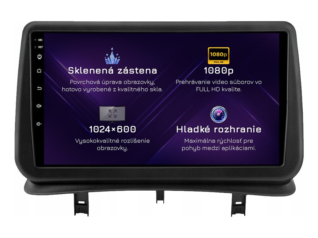 ⚠️ Rozlišení: 1024px x 600px = širokoúhlý Super VGA. Nejběžnější zobrazovací standard pro špičková rádia. Filmy se přehrávají v HD kvalitě.