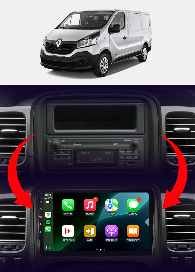 Rádio určené a plně přizpůsobené pro provoz ve vozidle RENAULT TRAFIC 3 III 2014-2021