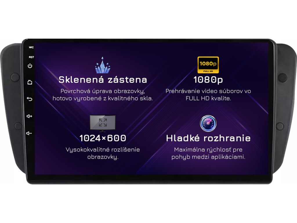 ⚠️ Rozlišení: 1024px x 600px = širokoúhlý Super VGA. Nejběžnější zobrazovací standard pro špičková rádia. Filmy se přehrávají v HD kvalitě.