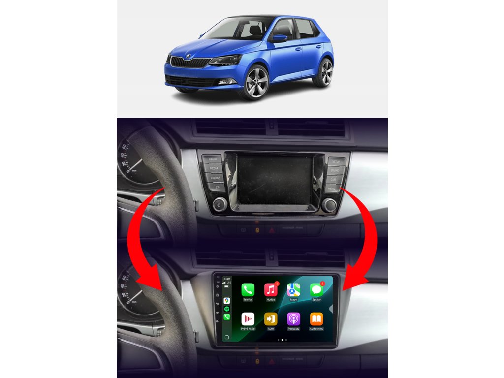 Rádio určené a plně přizpůsobené pro provoz ve vozidle Škoda Fabia III 2014-2021