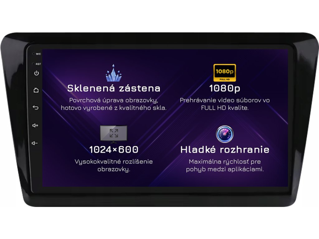 ⚠️ Rozlišení: 1024px x 600px = širokoúhlý Super VGA. Nejběžnější zobrazovací standard pro špičková rádia. Filmy se přehrávají v HD kvalitě.