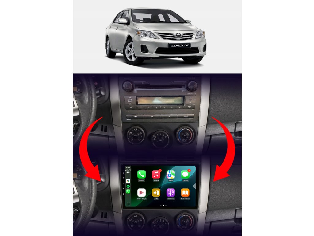 Rádio určené a plně přizpůsobené pro provoz ve vozidle Toyota Corolla X E15 2007-2014