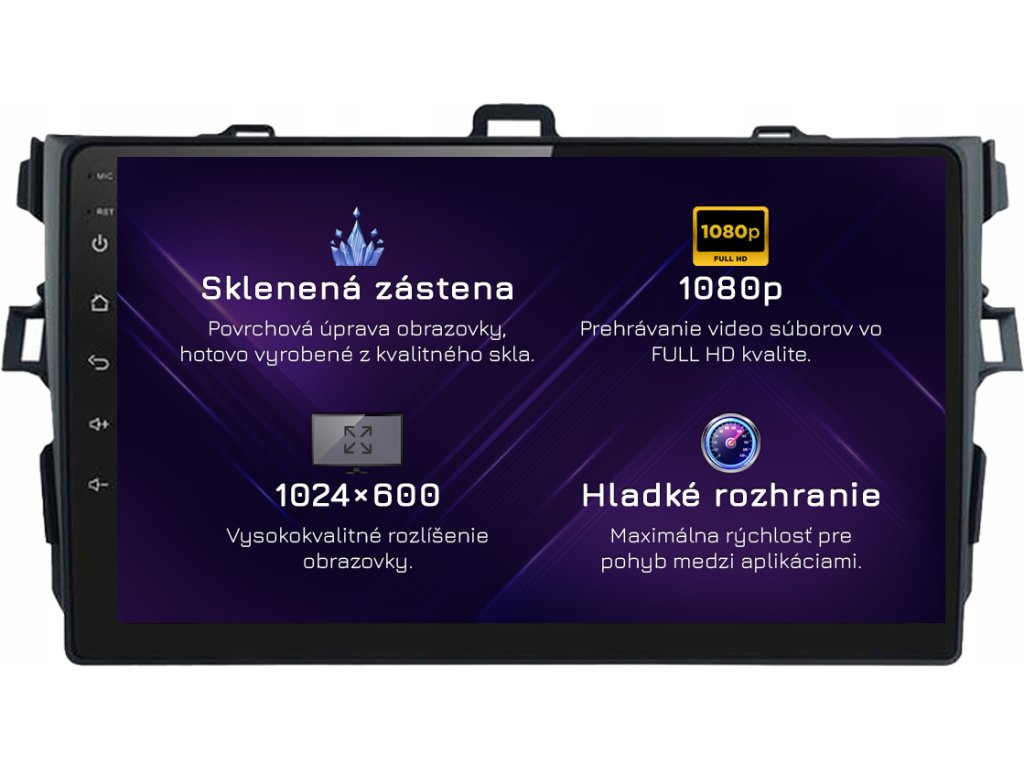 ✔️ Úhlopříčka displeje: 1,5 mm 9″ obrazovka krytá vysoce kvalitním tvrzeným sklem!