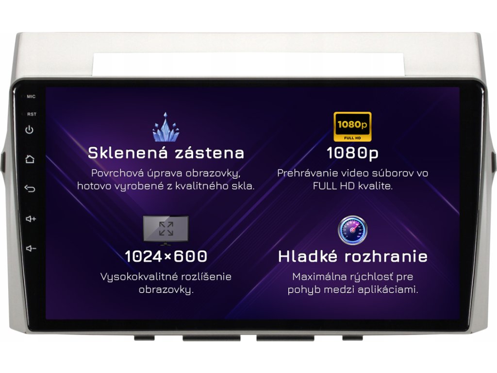 ⚠️ Rozlišení: 1024px x 600px = širokoúhlý Super VGA. Nejběžnější zobrazovací standard pro špičková rádia. Filmy se přehrávají v HD kvalitě.
