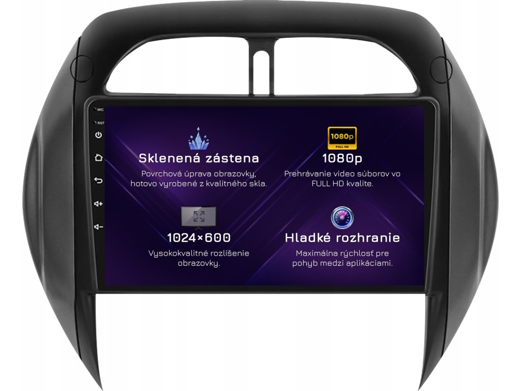 ⚠️ Rozlišení: 1024px x 600px = širokoúhlý Super VGA. Nejběžnější zobrazovací standard pro špičková rádia. Filmy se přehrávají v HD kvalitě.