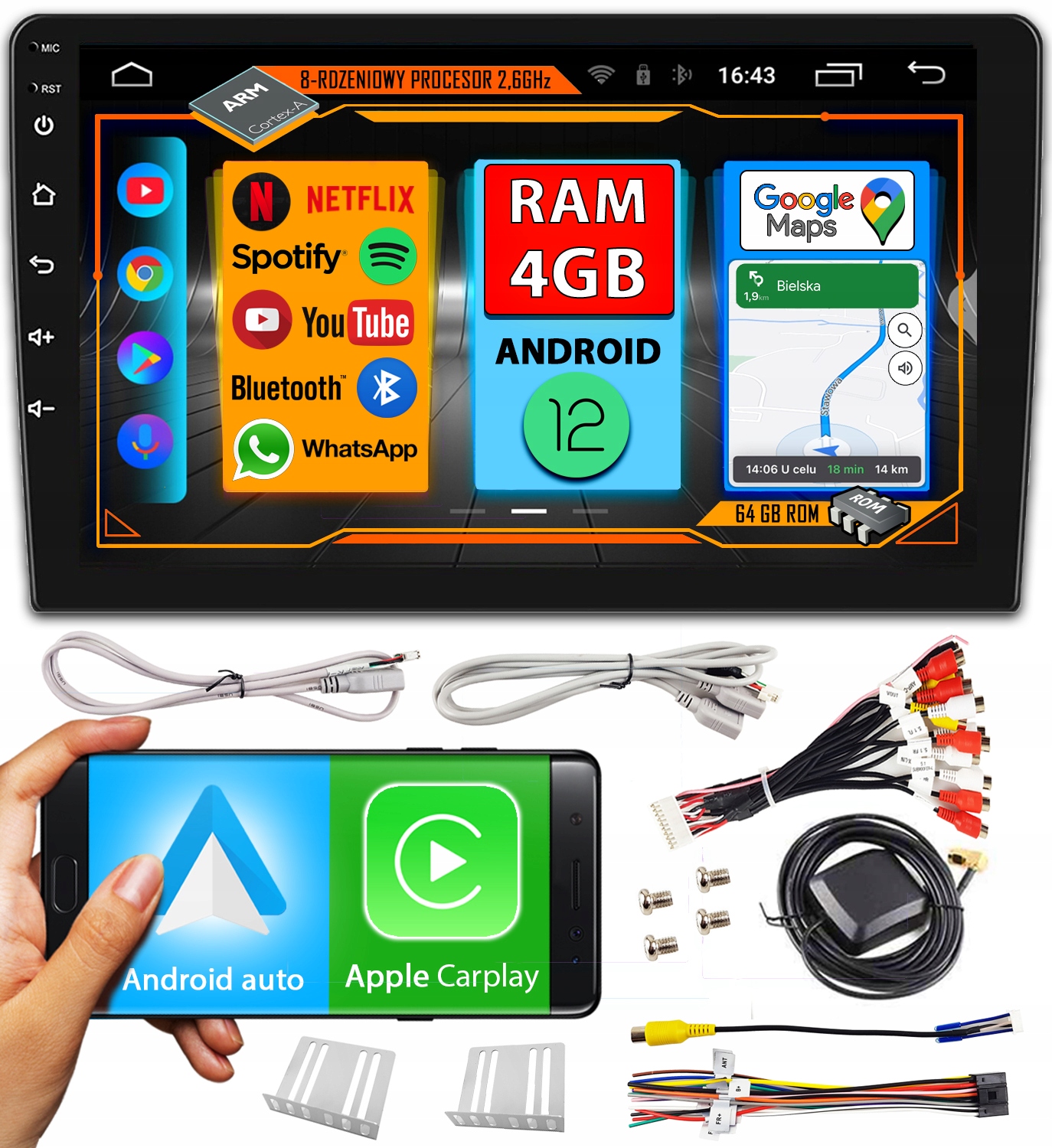 - Ovládání aplikací stejně jako na telefonu. Nainstalujte si užitečné a oblíbené aplikace jako: Waze, Yanosik nebo Fuelio!
