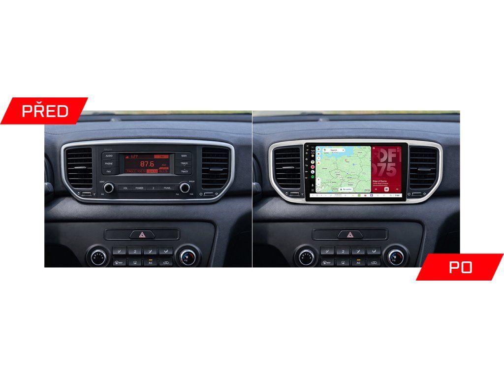 Moderní rádio se systémem Android, velkým QLED displejem a podporou Android Auto a Apple CarPlay. Zajišťuje rychlý chod, pohodlný přístup k aplikacím, navigaci i multimédiím a zvyšuje komfort každé jízdy. 🚗