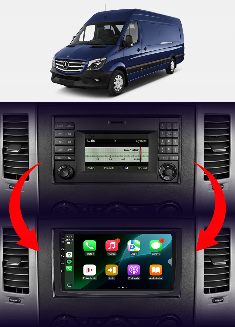 Speciální rádio NCS ZQ9 plně přizpůsobené pro provoz ve vozidle MERCEDES SPRINTER W906 2006-2019