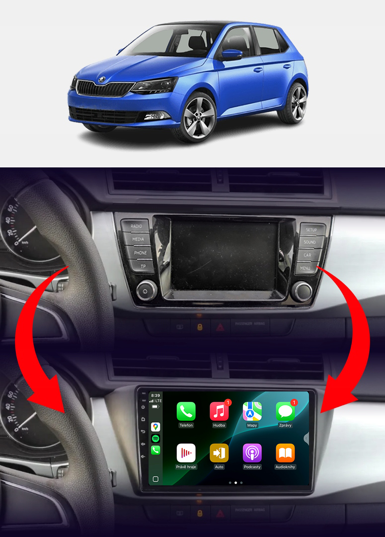 Autorádio NCS ZQ9 Škoda Fabia III 2014-2021 Android Navigace 8GB LTE