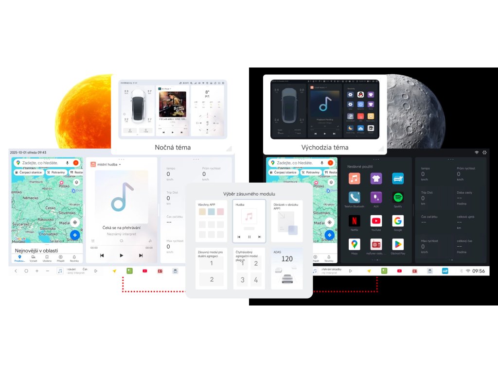 🌙 Denní a noční režim – automatické přepínání podle času nebo podle východu a západu slunce