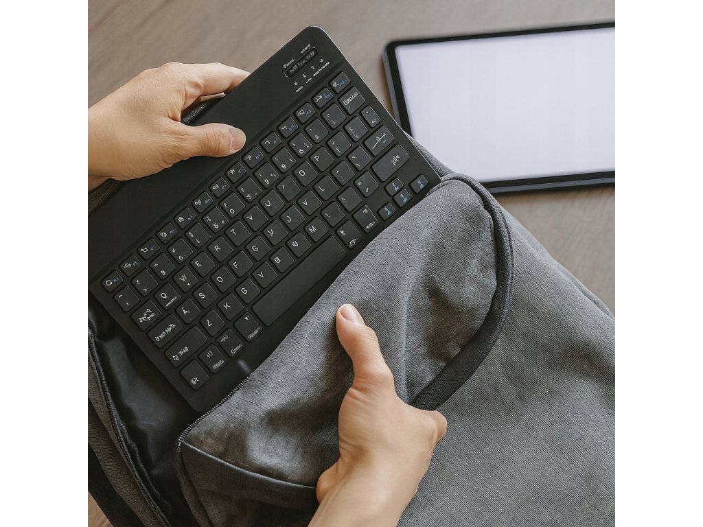 Klávesnice byla navržena tak, aby poskytovala maximální pohodlí při zachování malých rozměrů. Díky tomu se skvěle vejde do tašky, batohu nebo dokonce do malé přihrádky stolu.