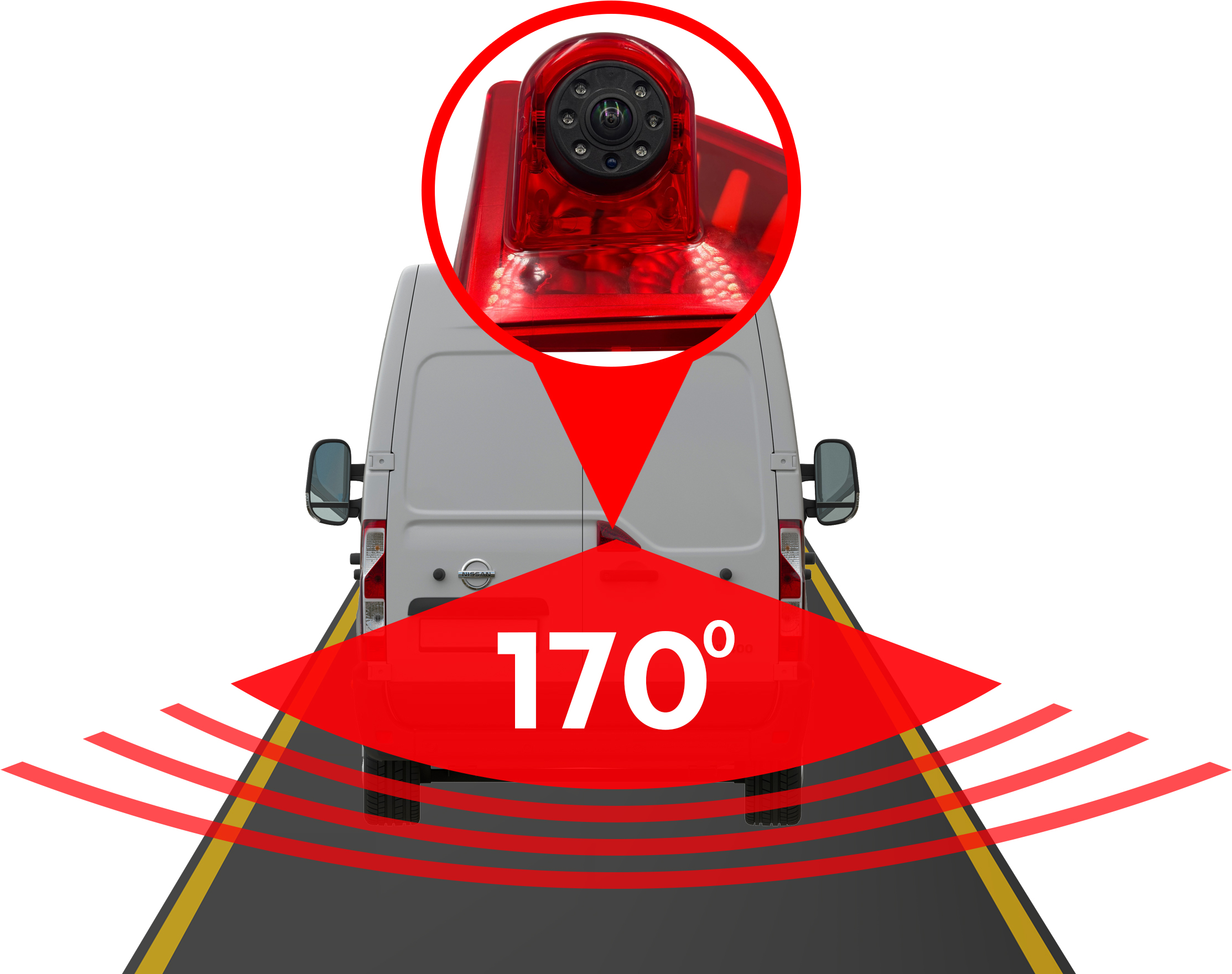 HD couvací kamera pro dodávku Nissan NV400 2010–2016, 6× IR, IP68, noční vidění
