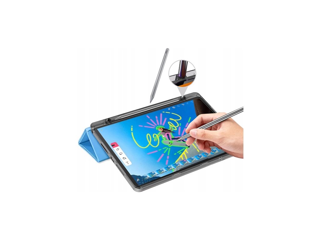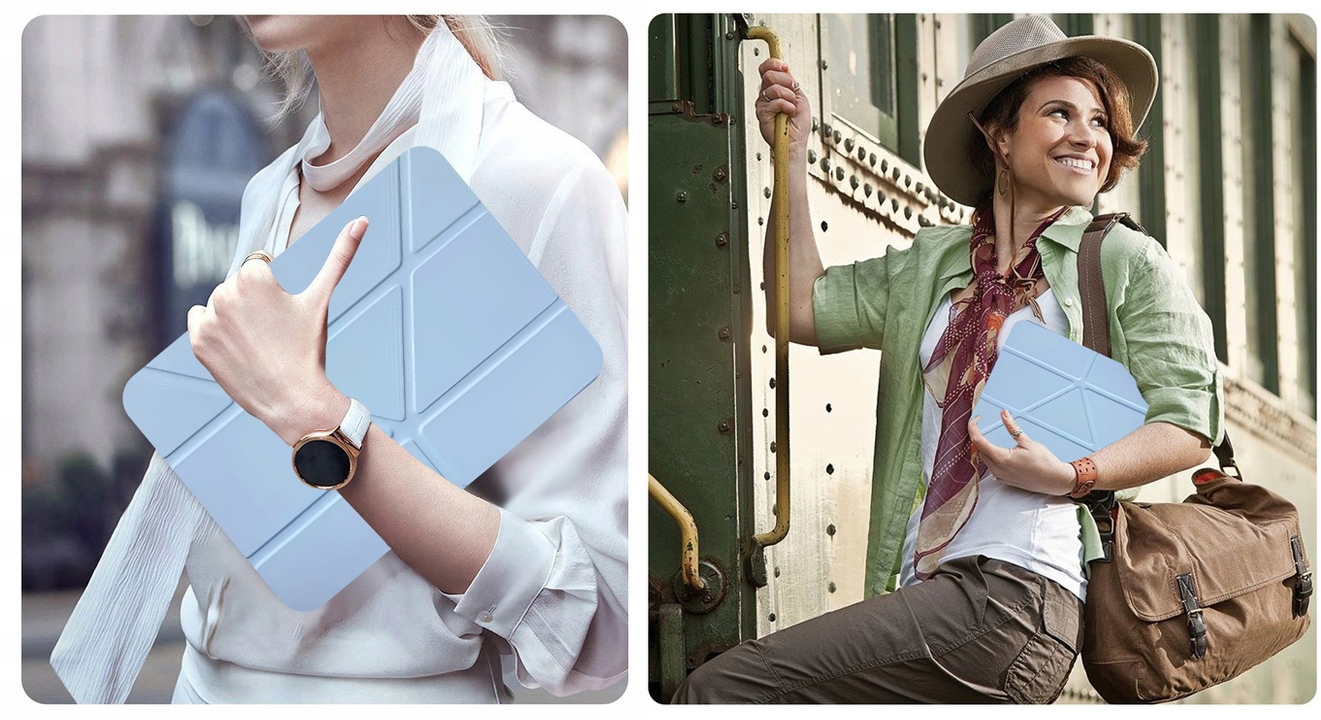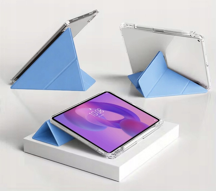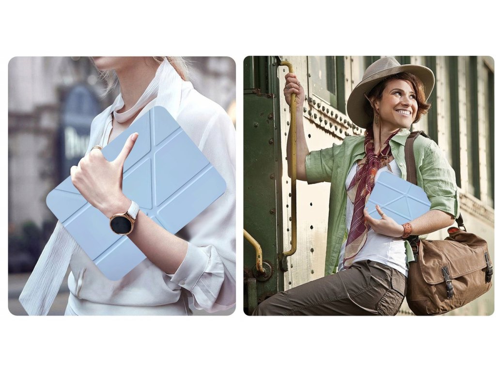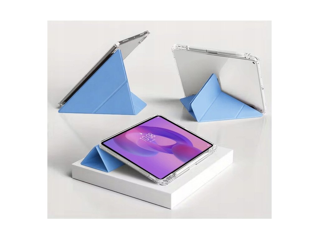 Pouzdro má skládací konstrukci, kterou lze nastavit třemi různými způsoby a přizpůsobit tak tablet aktuálním potřebám. Funkce stojánku umožňuje pohodlné nastavení zařízení jak do vodorovné polohy – ideální pro psaní, kreslení nebo prohlížení internetu – tak do svislé polohy, která se skvěle hodí při sledování filmů, videohovorech nebo prezentacích.