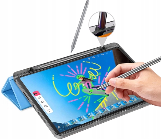 Pouzdro je vybaveno dedikovaným vertikálním držákem na stylus, díky kterému jej můžete pohodlně uchovávat společně s tabletem. Toto řešení usnadňuje rychlé vyjmutí příslušenství při práci, kreslení nebo psaní poznámek a zároveň jej chrání před ztrátou.