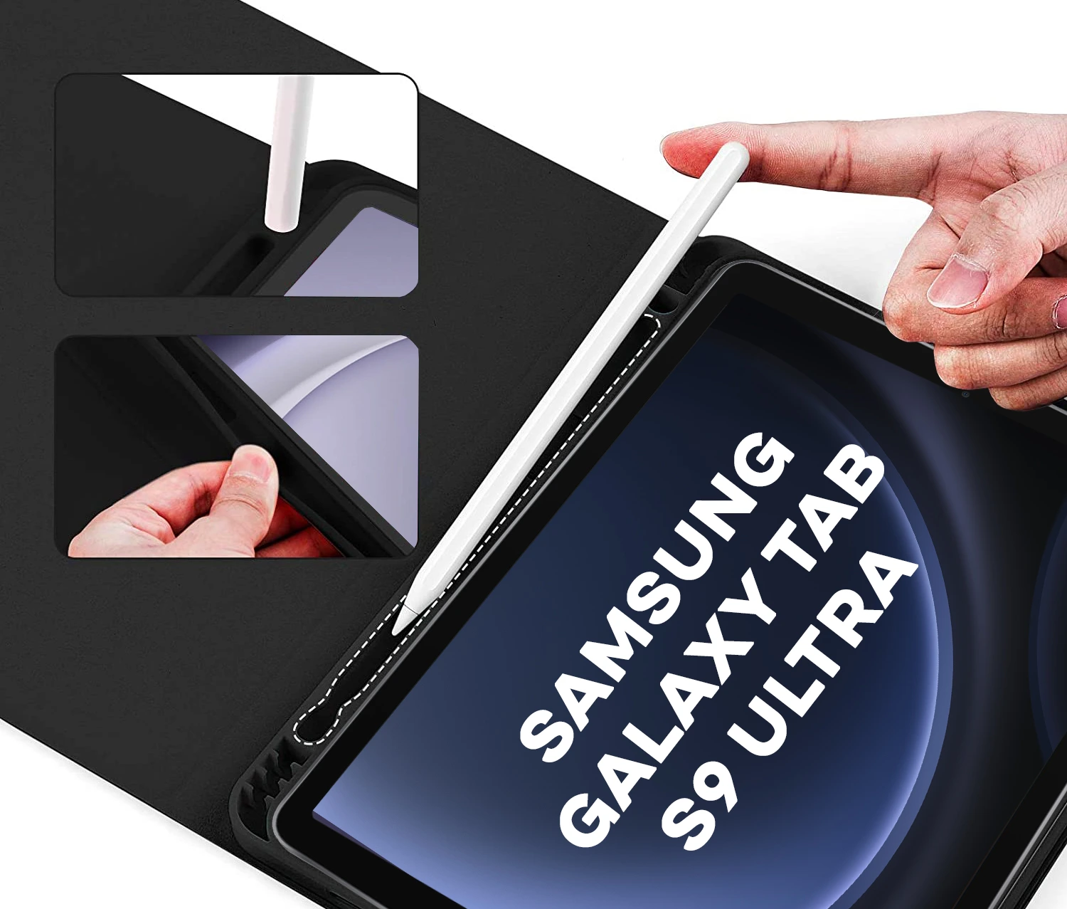 Nové speciální pouzdro ArmorCase Luxury pro tablet Samsung Galaxy Tab S9 Ultra 14,6“ s modely 2023: SM-X910, SM-X916B z vysoce kvalitních odolných materiálů. Má výřezy pro všechny sloty, konektory, tlačítka a fotoaparáty. Kryt je lehký a přitom odolný, vypadá esteticky a dokonale chrání tablet před mechanickým poškozením, vodou a prachem. Má praktické magnetické zapínání, které zabrání vypadnutí tabletu.