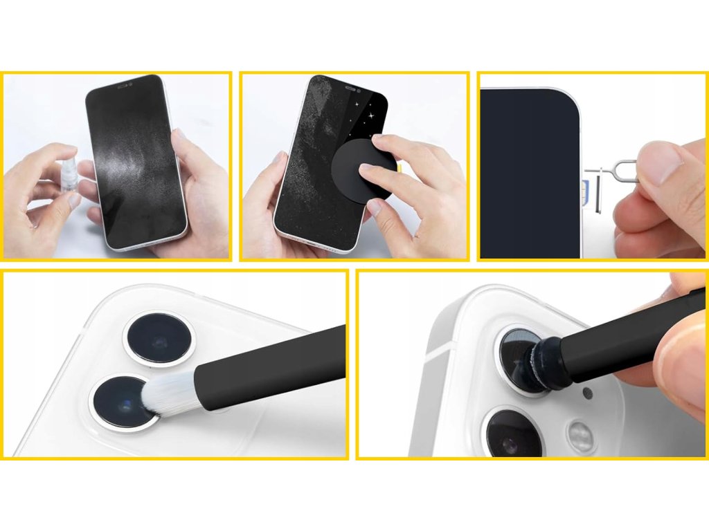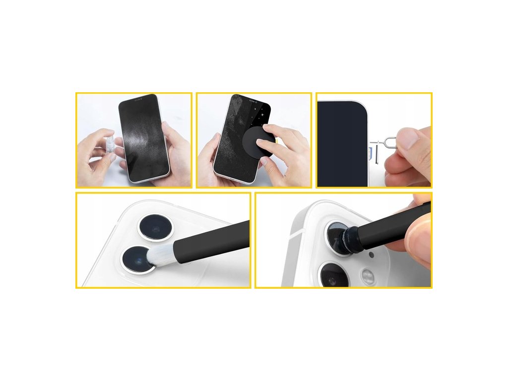Čisticí sada pro smartphony, fotoaparáty, objektivy, tablety, laptopy, klávesnice, reproduktory, obrazovky a další zařízení s těžko přístupnými zákoutími.