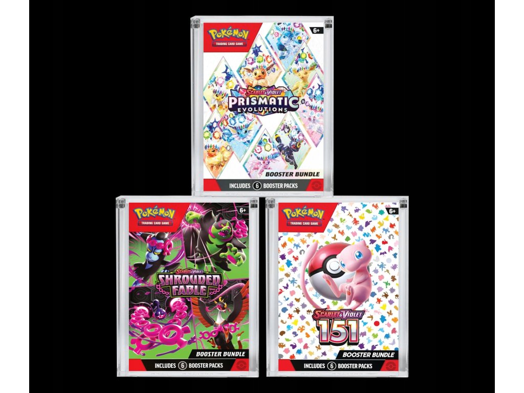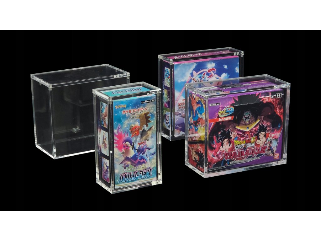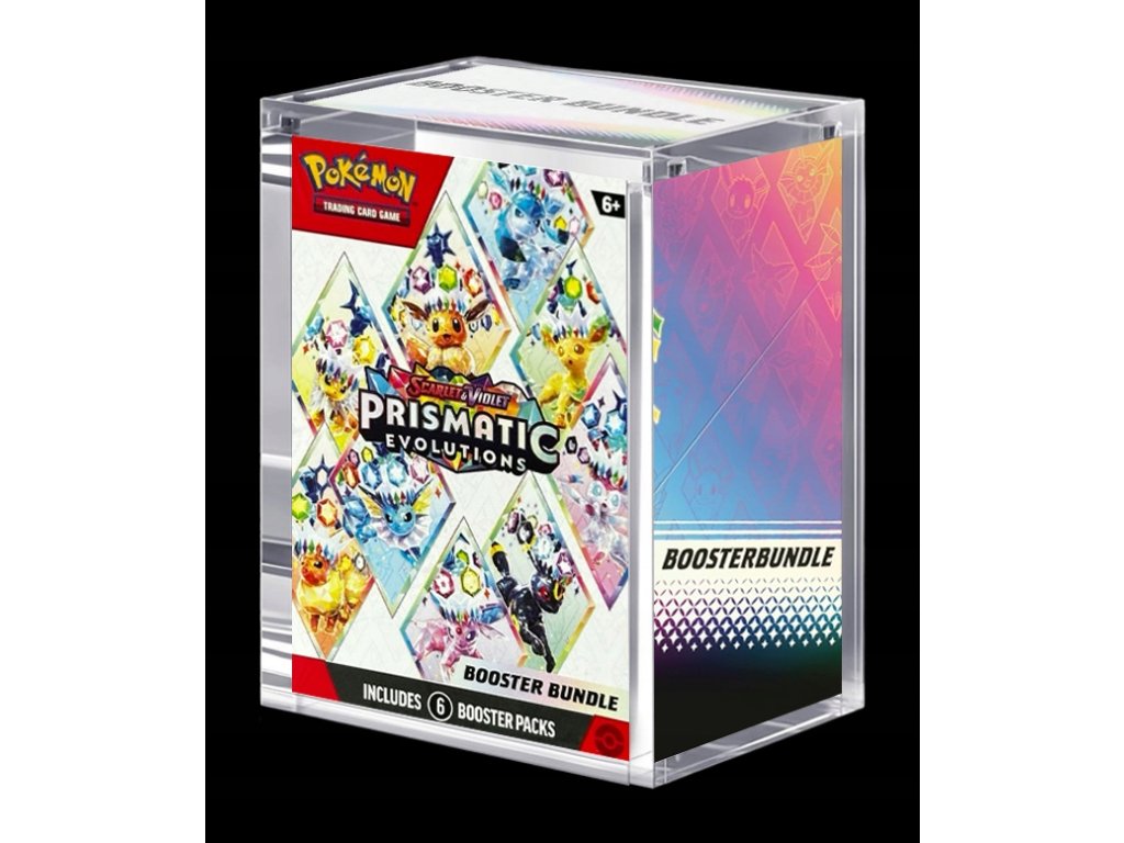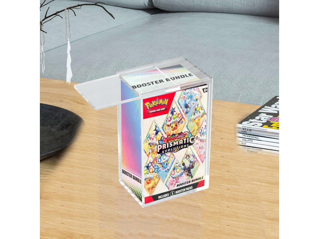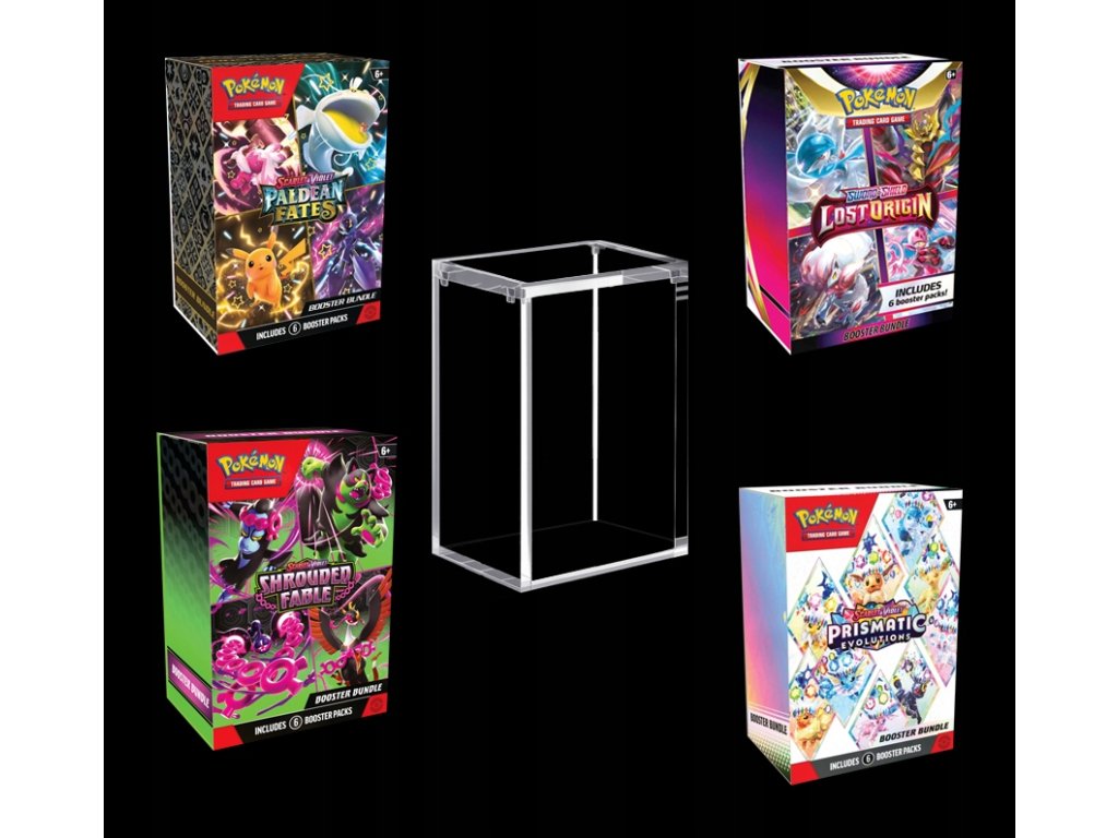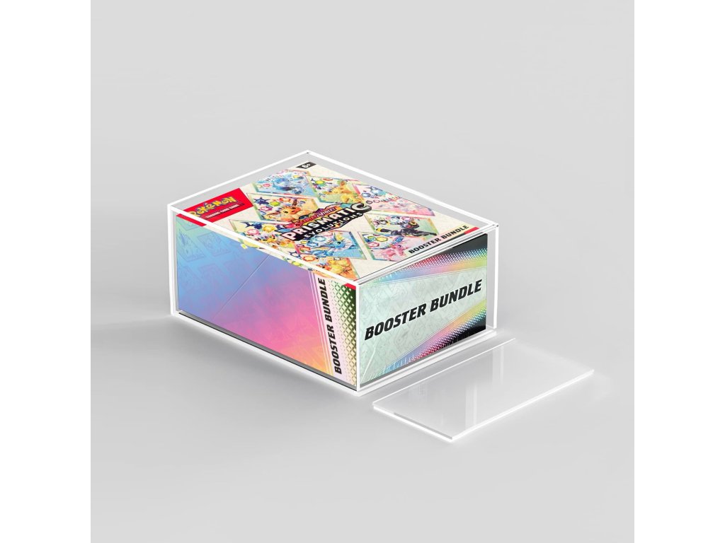 Exkluzivní průhledná akrylová vitrína navržená speciálně pro anglické sady Pokémon TCG Booster Bundle.
