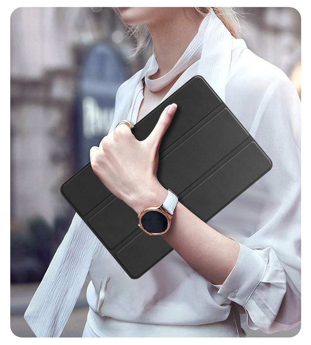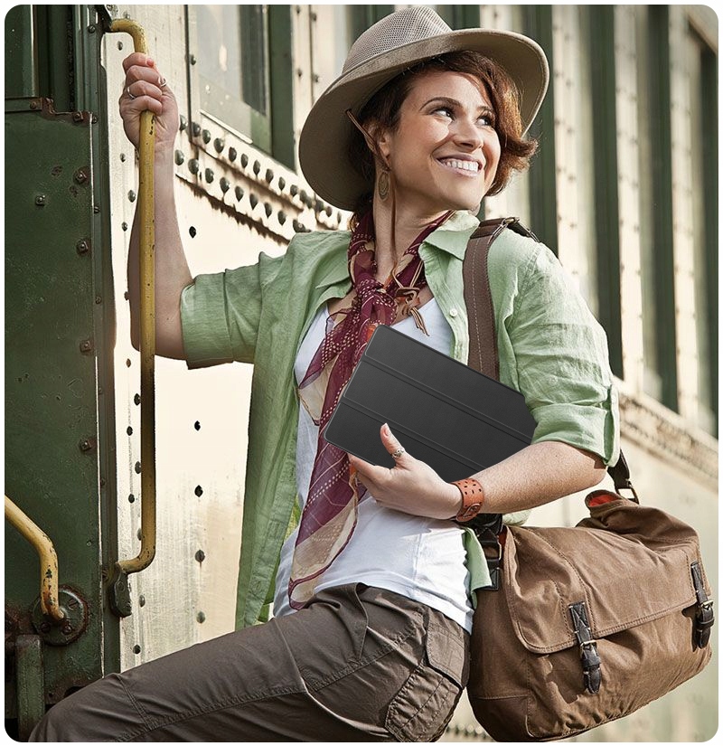Pouzdro má výřezy pro všechny porty, tlačítka i kamery. Je lehké, ale zároveň odolné, působí elegantně a spolehlivě chrání tablet před poškozením, vodou i prachem.
