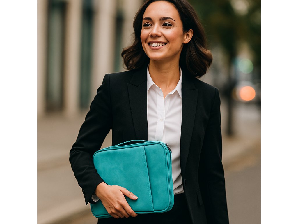 Kolik doplňků s sebou nosíš každý den do práce? Tablet, telefon, sluchátka, powerbanka, poznámkový blok, propisky, diář, peněženka… Všechny tyto předměty teď můžeš pohodlně přenášet v jednom elegantním a odolném pouzdře.