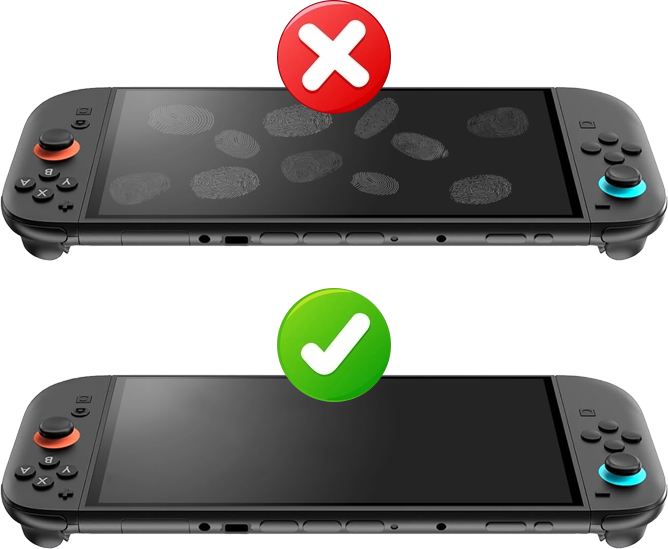 Nintendo Switch se dotýkáte velmi často – ještě než dokončíte jednu herní seanci, displej už může vypadat jako zrcadlo v koupelně. Právě proto má sklo ArmorGlass® oleofobní vrstvu, která omezuje šmouhy a usnadňuje čištění.