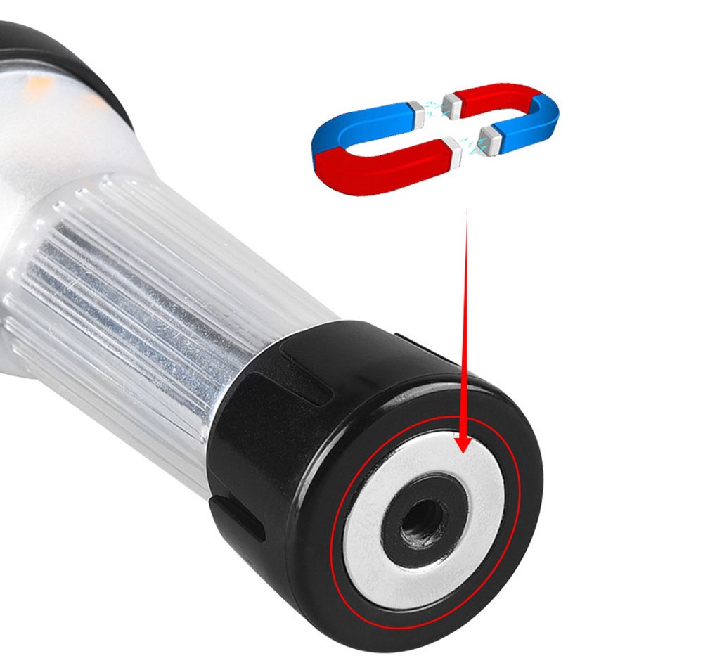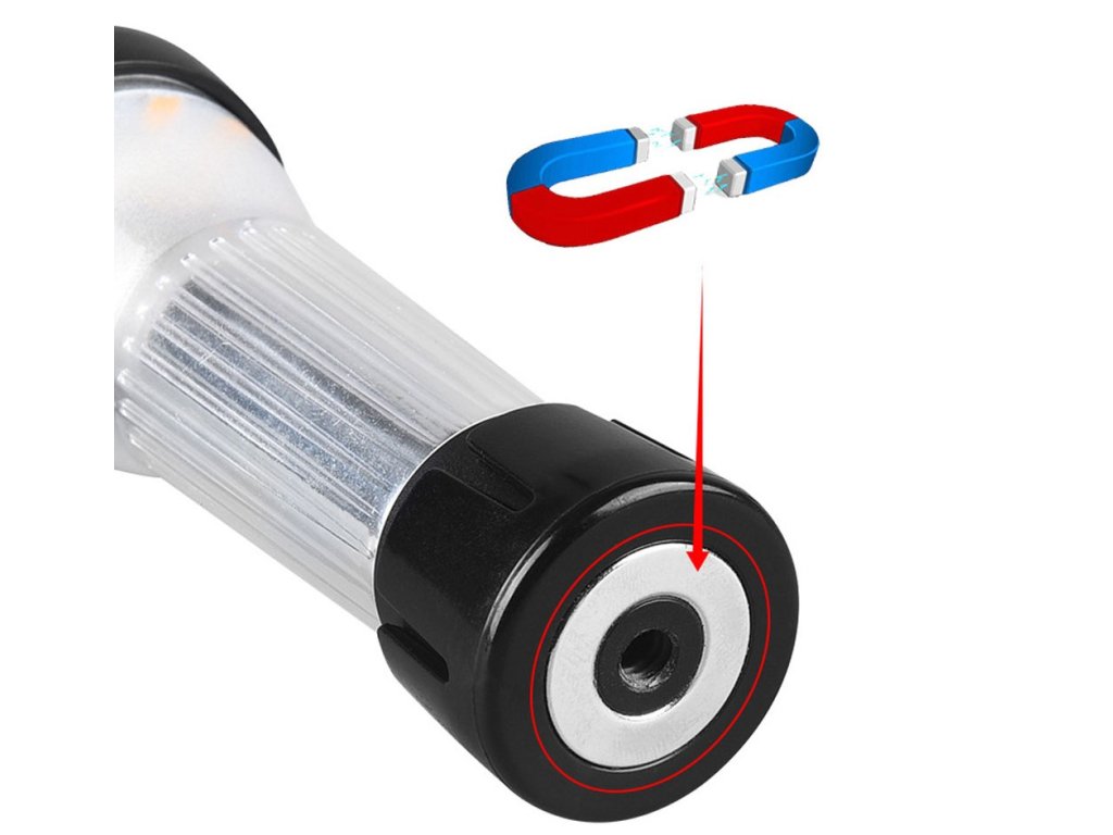 Díky silnému magnetu na spodní straně lze lampičku snadno připevnit na kovové povrchy, což je velmi praktické při manipulaci s nástroji, opravách nebo při práci v tmavých prostorách.