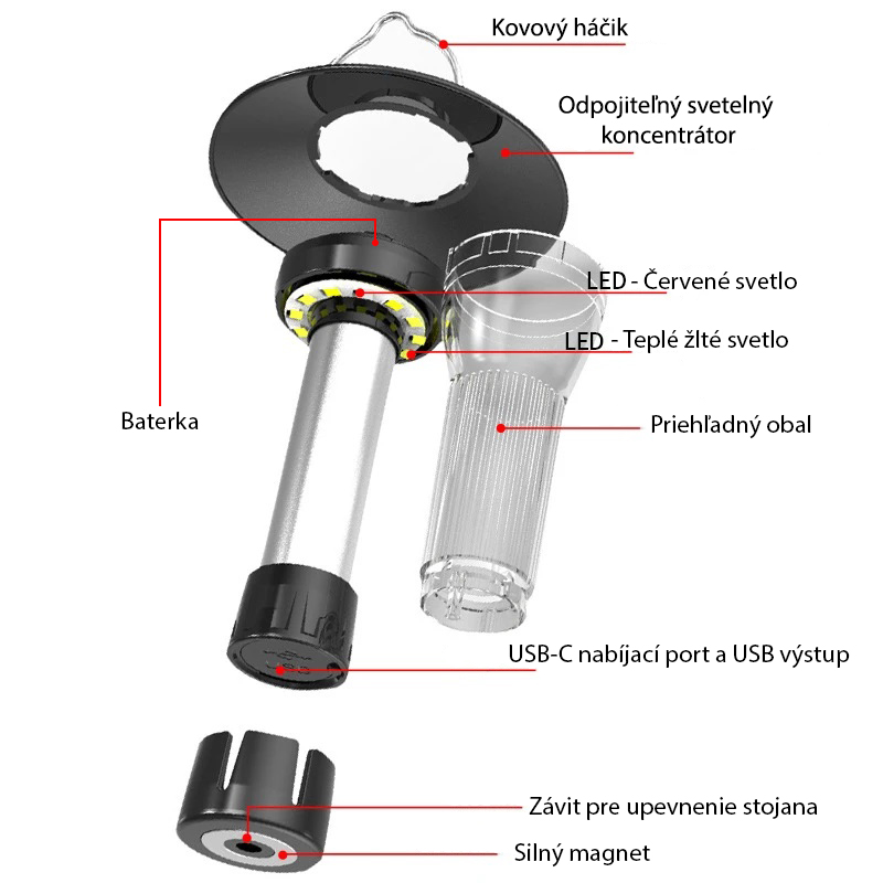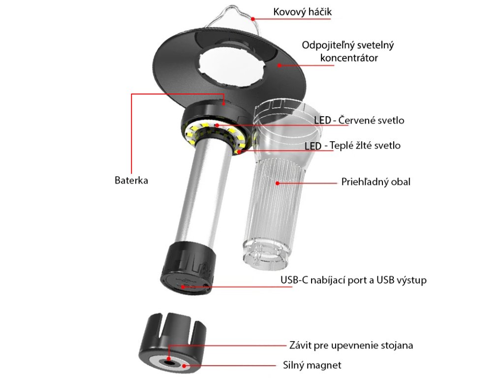 Její průhledný obal dodává lampičce estetický vzhled a zároveň umožňuje kontrolovat stav baterie. S možností nabíjení přes USB-C a dokonce i funkcí powerbanky je tato lampička skvělým pomocníkem při všech venkovních aktivitách – poskytne nejen osvětlení, ale i možnost dobíjet elektronická zařízení.