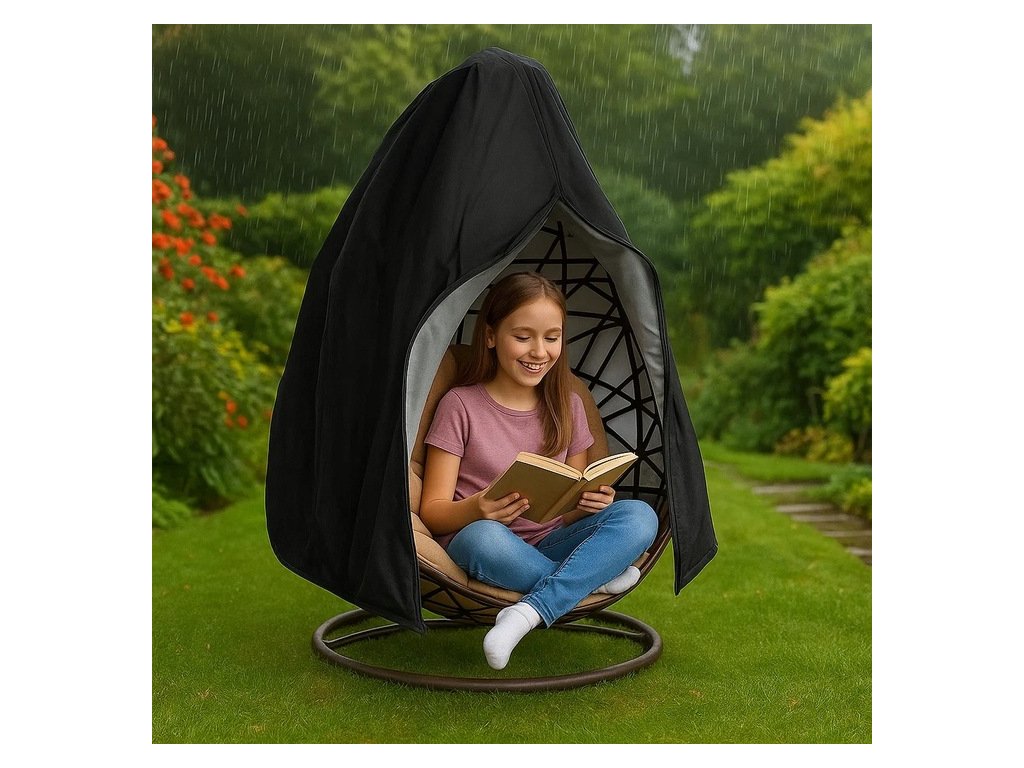 Díky našemu obalu si můžete užívat závěsné křeslo i za mírného deště. Uvolněte se při poslechu uklidňujících zvuků dešťových kapek dopadajících na obal. Používejte obal jako přídavný baldachýn – stačí rozepnout zip do požadované šířky a pohodlně si číst knihu nebo si zdřímnout.